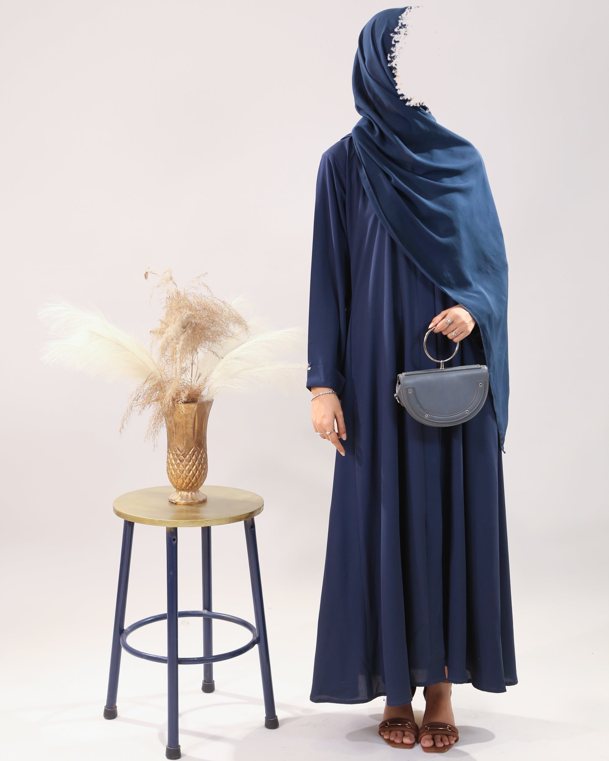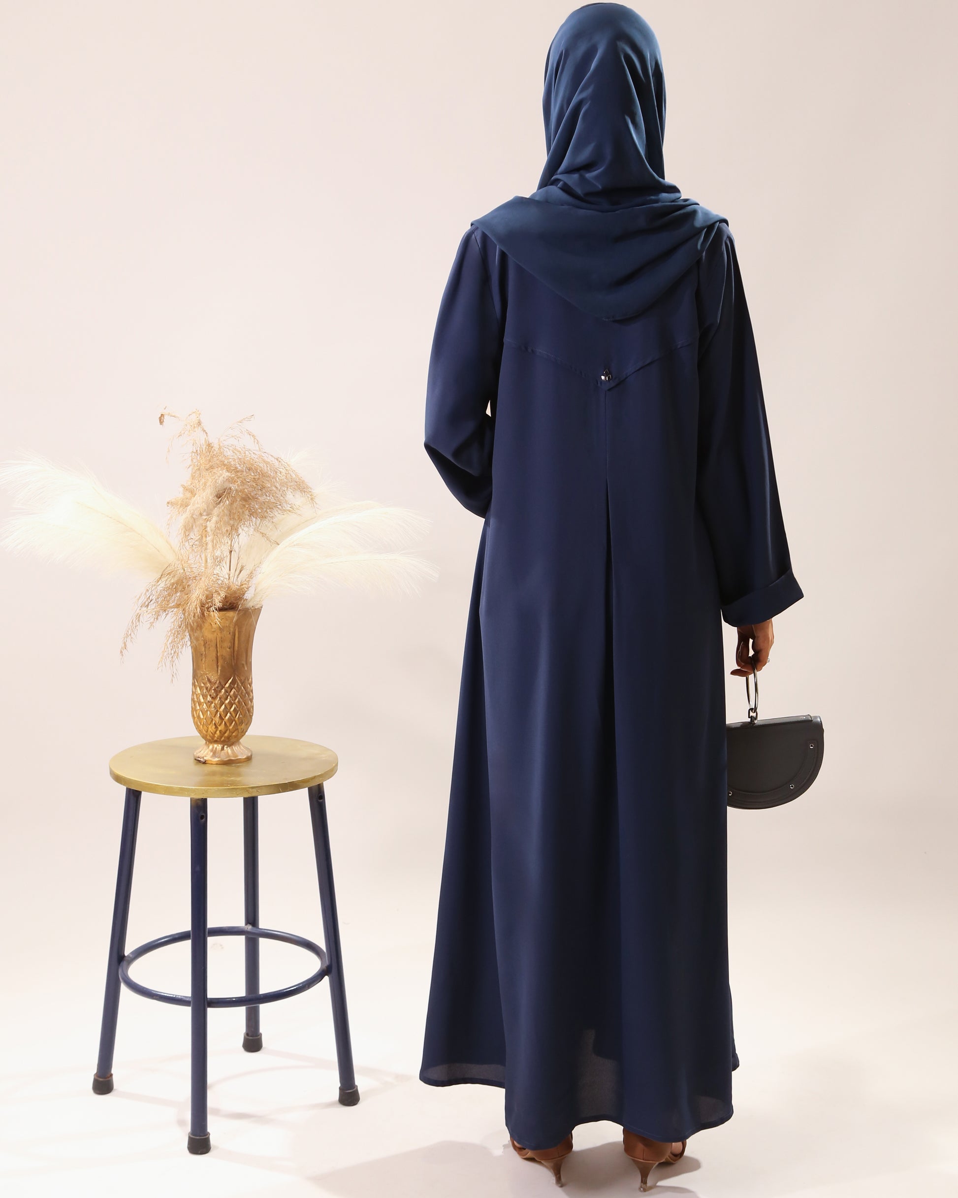 Our deep blue abaya blends everyday elegance with subtle glam. The studded sleeves add just the right sparkle, while the box pleat details at the back gives it a sleek, tailored flow. Comes with a matching hijab β for a look thatβs simple, refined, and ready to wear daily.