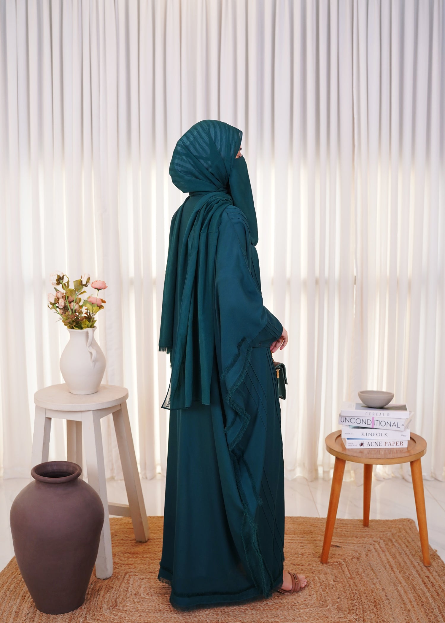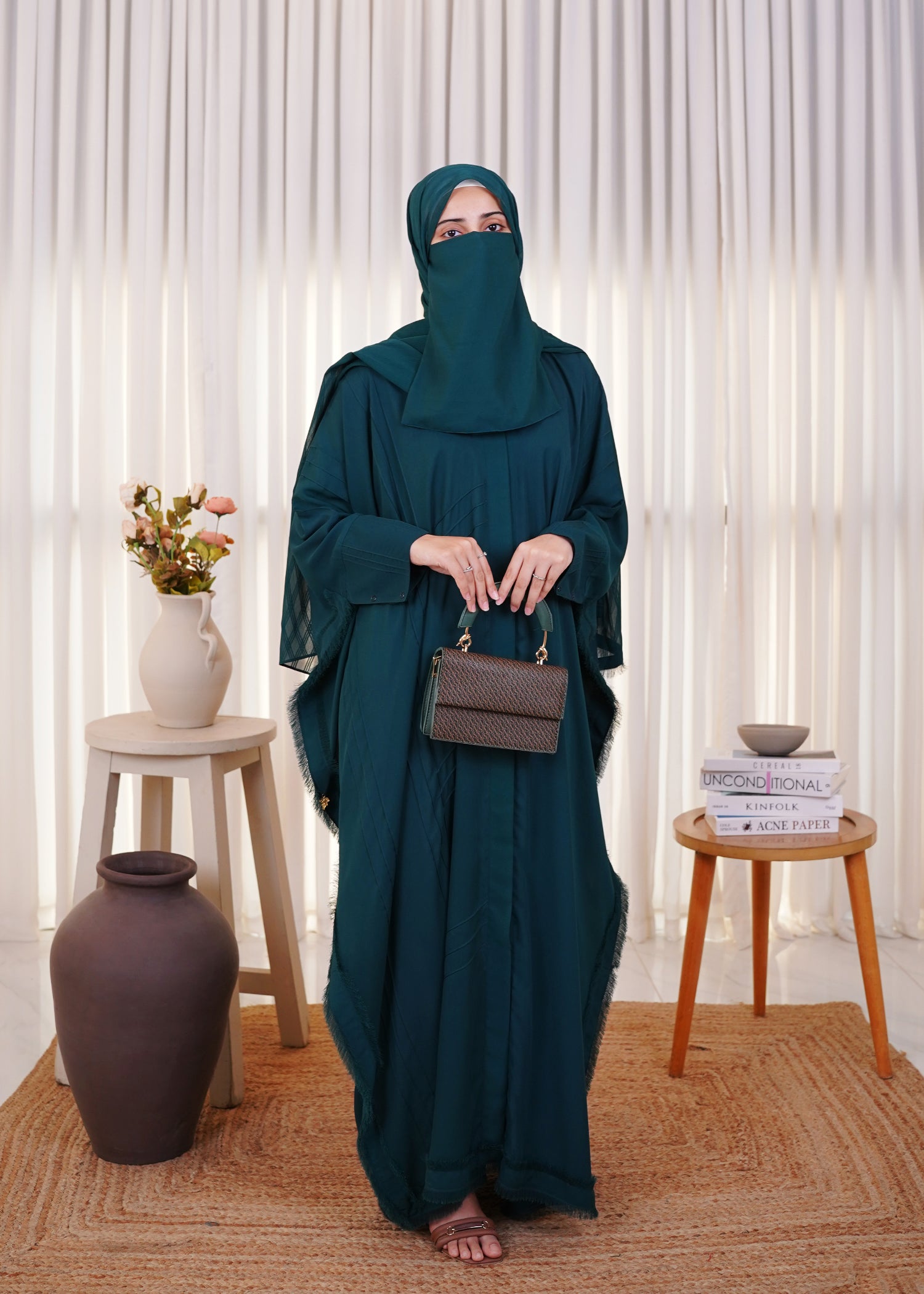 Dark green Poncho style abaya for the one who likes it airy!